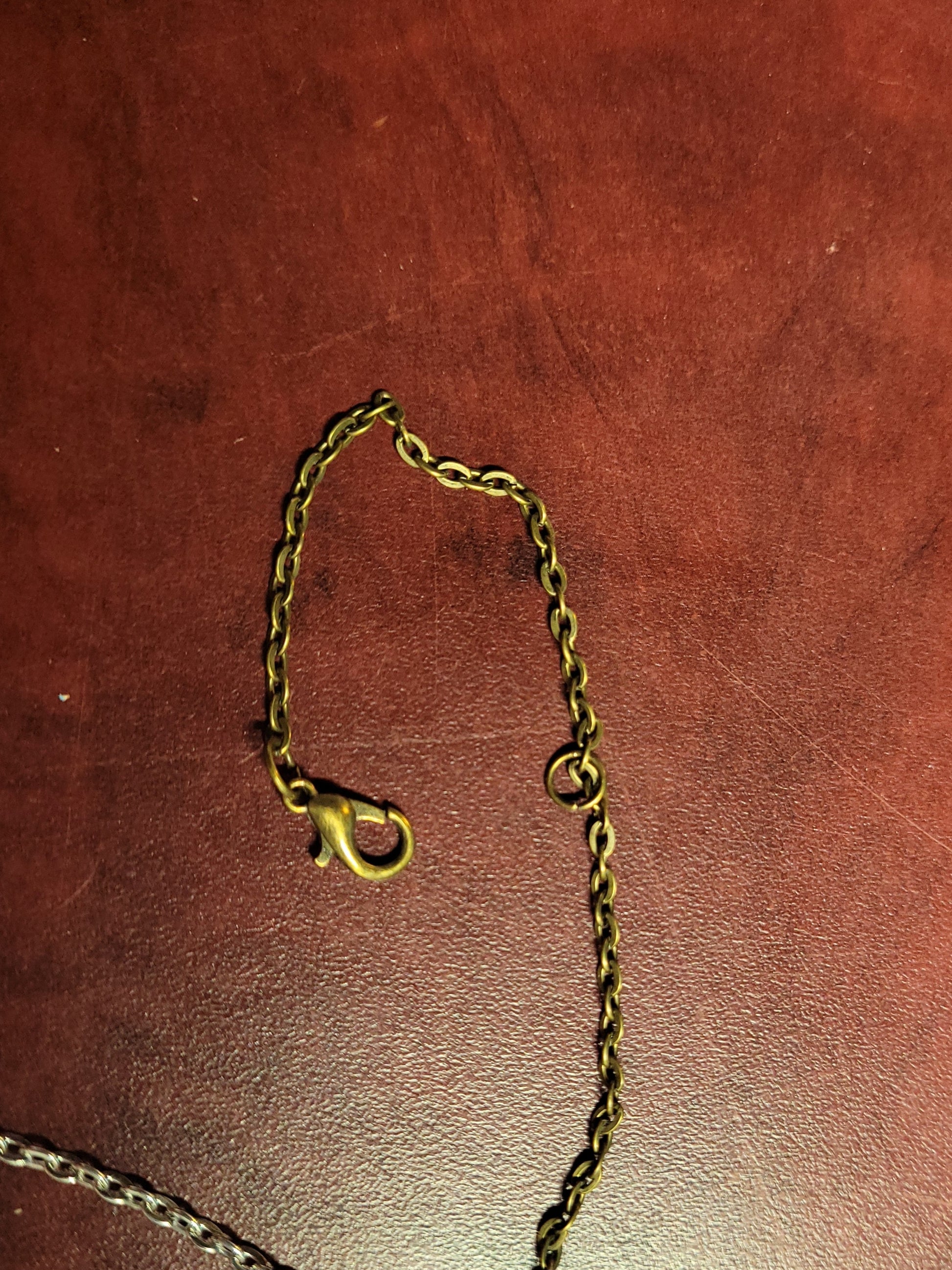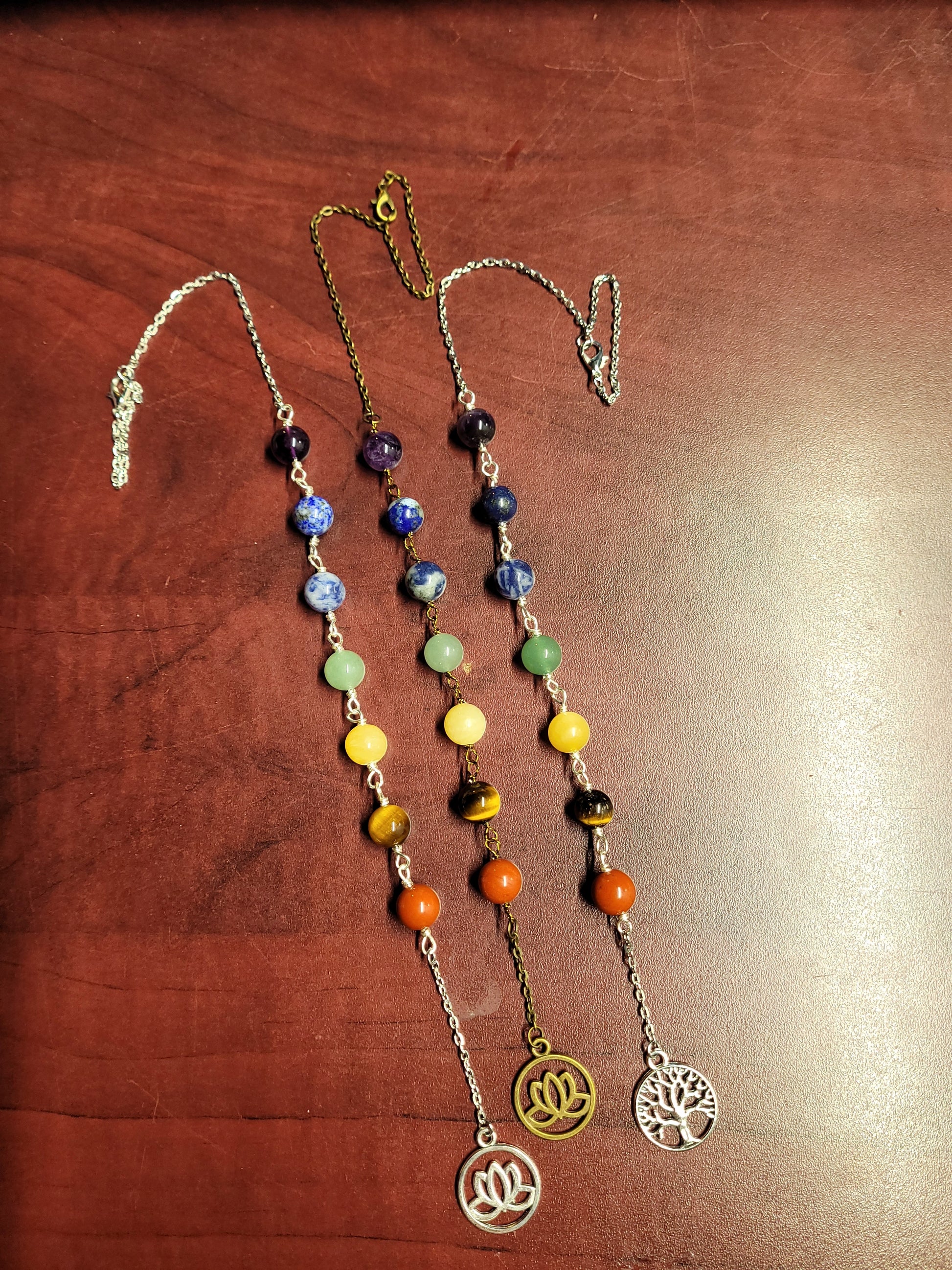 Décoration fabriquée à la main avec fil et chaine anti-ternissement assortis, perles de gemmes naturelles de 10mm et breloque assortie.